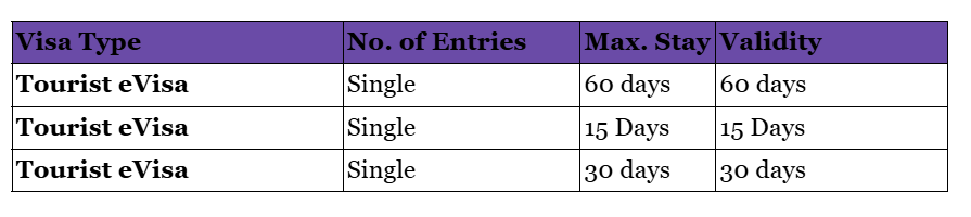 - Tourism purpose only: The eVisa is intended for short-term travel such as sightseeing and leisure.